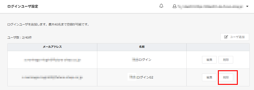 管理画面を利用中できるログインユーザーを40ユーザーまで追加できます。