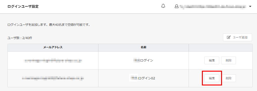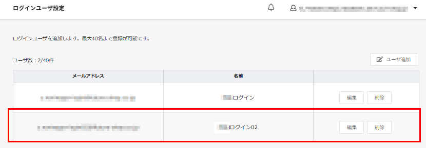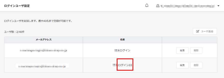 - 追加手順については、ログインユーザー追加手順をご覧ください。