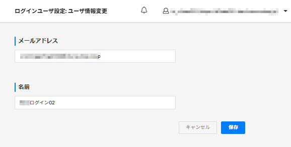 「メールアドレス」「名前」変更し、[保存]を押下します。