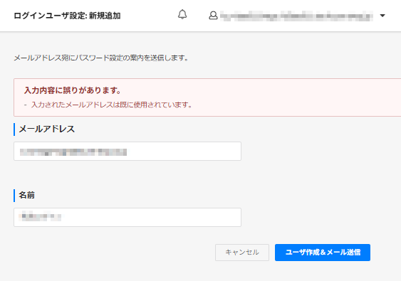 [ユーザ―作成&メール送信]を押下します。