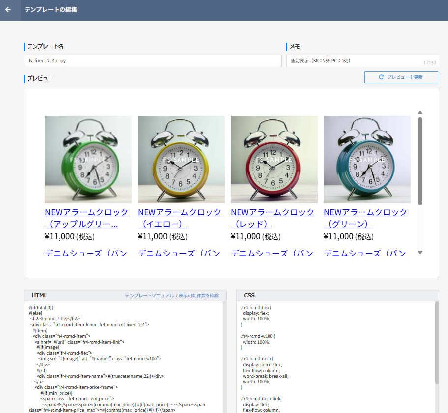 「表示枠」は、future AI Recommend Plus管理画面-テンプレート新規作成・編集にてカスタマイズが可能です。
